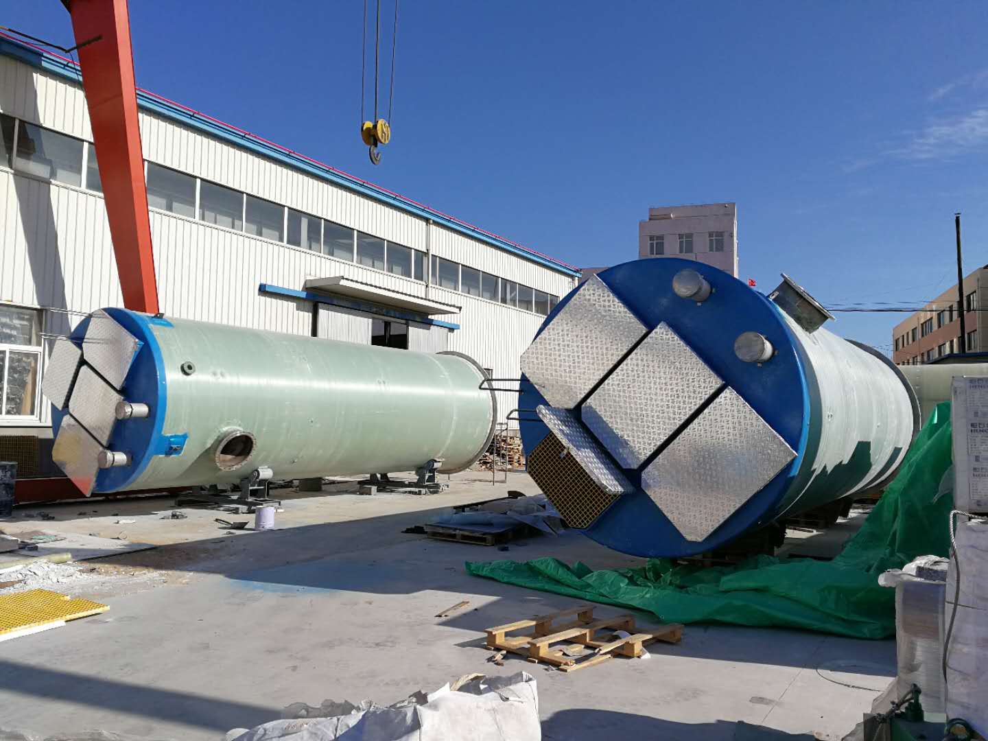 應具備手動控制、自動控制和遠程檢測功能,不同控制方式之間應可以自由切換。泵站筒體結構由纖維纏繞玻璃鋼( GRP )制成,采用意大利 VEM 公司設備,全自動化控制連續續纏繞成型,確保厚度均勻并達到設計的剛度,質量穩定優良。所有配件